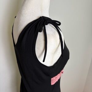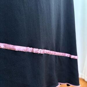 Gorgeous dress in great condition. The pink satin trim that runs parallel to the hem is a little wrinkled/puckered. Might iron out, but it looks fine as is.