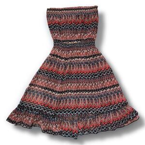 Vintage 90’s Y2K Deb Boho Strapless Red Print Mini Dress Size Large EUC