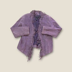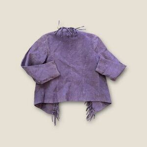 Vintage 90s Y2K Dialogue Suede Leather Fringe Open Jacket Purple Small