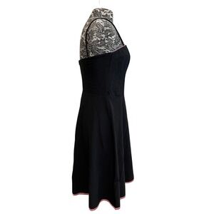 Vintage 90s Rampage Clothing Company dress, black with pink trim. Fit and flare styling, spaghetti straps, very little stretch. Zipper closure, square / sweetheart neckline.