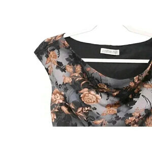 Vintage 90s Y2K Dress Size Small Chiffon Floral Cowl Neck Draped Maxi Flowy