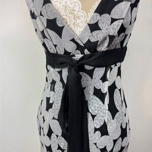 Vintage 90s Y2K Dressbarn Size 4 Butterfly Floral Silk Chiffon Flowy Midi Dress