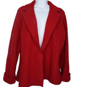 Vintage 90s Y2K Elena Solano Red Boiled Wool Jacket Coat M One Snap Shawl Collar