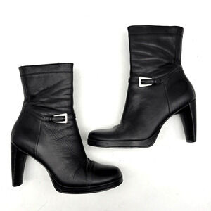 Vintage 90s Y2K Enzo Angiolini 'OASIS' Black Leather Block Heel Ankle Boots 7M