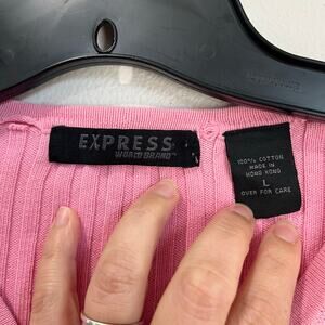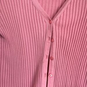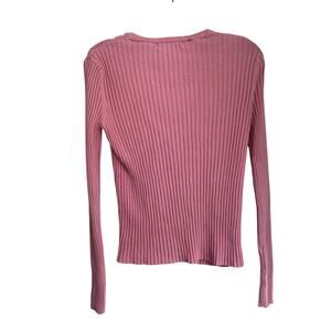 Vintage 90s Y2K Express Ribbed Long Sleeve Pink Cardigan Sweater Sz L