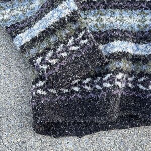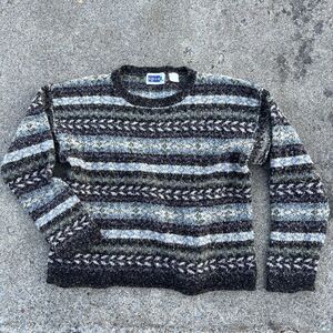 This vintage sweater from the early 90s/Y2K era features a multicolor Fair Isle pattern and a tight-knit construction, making it a perfect choice for travel, casual outings, or workwear. The crew neck and long sleeves provide comfort and warmth, while the relaxed fit adds a touch of ease to your wardrobe. This sweater is made of a wool blend, polyester, wool, and acrylic materials and is machine washable for easy care.