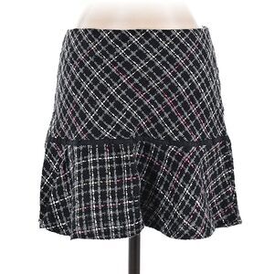 Vintage late 1990s, early 2000s (Y2K) First Crush tweed micro mini skirt. Black, white and pink knit plaid.