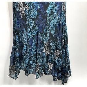 The Vintage 90s Y2K Floral Dress by Style&co. in size Medium is a medium size dress perfect for clubwear occasions. This fairy style dress features a beautiful blue floral design in a maxi length, made of 100% rayon material. It has a bohemian look that is characteristic of the 1990s decade. Perfect for those looking for a unique and whimsical piece to add to their wardrobe.