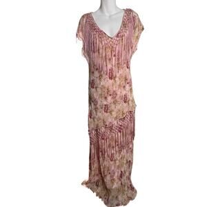 Vintage 90s Y2K Floral Fringe Pink Temptation Large Flapper Style Max Dress Set