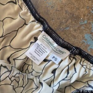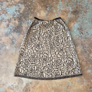 Vintage Coldwater Creek embroidered mesh midi skirt with velvet waistband, size petite small. In gently preowned condition, it has some missing stitches along with waistband that do not affect wear, no other flaws noted.