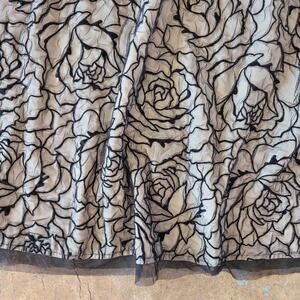 Vintage 90s Y2K Floral Mesh Midi Skirt Size S P Black Roses Whimsygoth Gothic