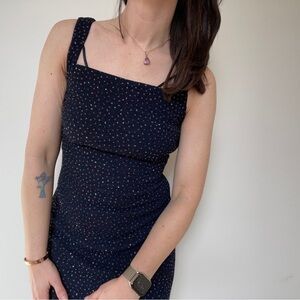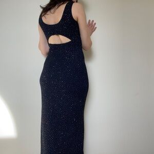 Stunning 90s Y2K prom dress. Very flattering and wearable. Fabric has some stretch to it and forms to the body. Iridescent sequin embellishments. Side zip. Cut out in the back. Bra friendly.