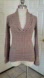 Darker taupe / light brown color, ribbon texture. Long sleeves, ribbon direction at cuffs / rolled collar / shawl collar, v neckline. Great neutral color, goes with everything! Nice and warm, but not thick and bulky. Excellent vintage condition.