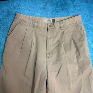 Vintage 90s Y2K GAP Relaxed Fit Mens Chinos Tan Pleated Cuffed Pants 34X34.5