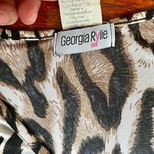 Vintage 90’s Y2K Georgia Rylie Leopard Ruffle Bodycon Long Sleeve Blouse Medium