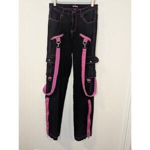 Vintage 90s Y2K HOT TOPIC Trip Rave Cargo Pants Stars Pink Black Womens Size 9