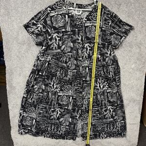 Item: Womens casual Hawaiian dress / muumuu with button-front closure and relaxed fit.