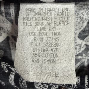 Color: Black and white with allover tropical print featuring shells, coral, fish, and abstract island motifs.