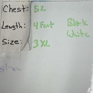 Actual Measurements (as noted on markerboard): Chest 52 in, Length 48 in