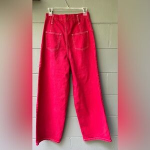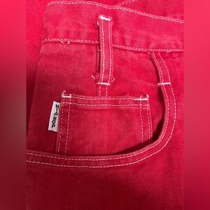 Vintage Y2K Hip Hop Baggy Pants red high-waisted extra wide leg and back pockets. Made in the USA. Rare find!