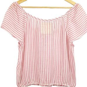 vintage, VTG, retro, 80s, 90s, Y2K, casual, everyday, candy cane, stripes, striped, coastal, vacation, vacay, Summer, beach, beachy, nautical, semi sheer, off the shoulder, Peasant, prairie, cottagecore, coquette, hollister, Abercrombie, milkmaid