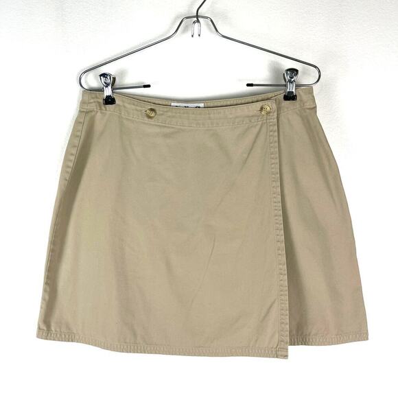 Vintage 90s Y2K INC Khaki Beige Cotton Mini Wrap Skirt Women's 12 FITS MODERN 8