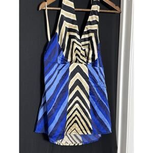 Vintage 90s Y2K Indie Teal Purple Halter Wrap Top Limited Tie back open back L