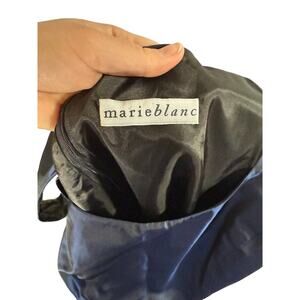 Step into the spotlight with this Vintage 90s Y2K Iridescent Navy Blue Evening Gown by Marie Blanc. This stunning gown features a "liquid look" fabric that shimmers with every movement, giving off a beautiful iridescent sheen. The gown's sleek and flowing design is both timeless and trendy, offering a flattering silhouette that will leave a lasting impression.
