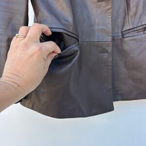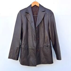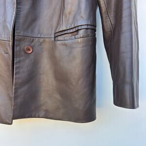 Vintage 90s Y2K Italian Leather Blazer Jacket Chocolate Brown 42 Size 8 Tailored