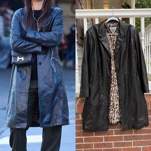 Vintage 90s Y2K J. Percy Marvin Richards Black Leather Trench Jacket Size 1X XL