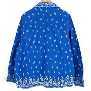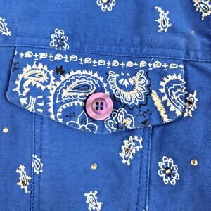 Vintage 90s Y2K Jean Denim Jacket Embroidered Paisley Retro Rhinestones Blue L