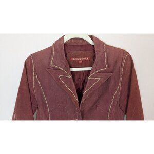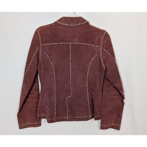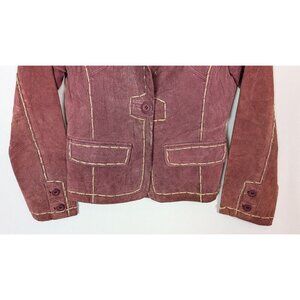 Vintage 90s Y2K Jennyfer J sz. M LEATHER Jacket Blazer Coat Thick Stitching Red