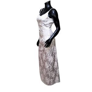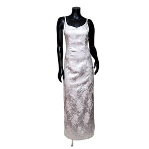 Details: Vintage 90s Y2K Silver Metallic Floral Prom Formal Gown