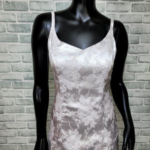 Vintage 90s Y2K Jump Apparel Light Pink Silver Metallic Floral Prom Formal Gown