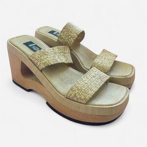 Vintage 90s Y2K L.E.I. Woven Square Toe Cutout Platform Wedge Sandals Size 8