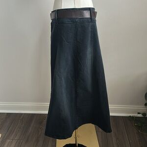 Vintage 90’s Y2K Lee Black Wash Boho Western Casual Midi Denim Modest Skirt 7/8