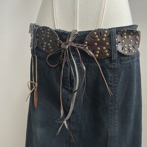 Vintage 90’s Y2K Lee Black Wash Boho Western Casual Midi Denim Skirt Juniors 7/8