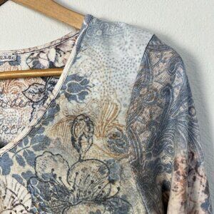 Vintage 90s Y2K Long Sleeve Top Pastel Floral Fairy Embellished Size Medium