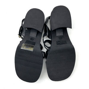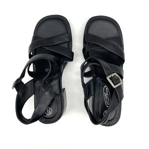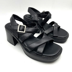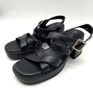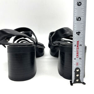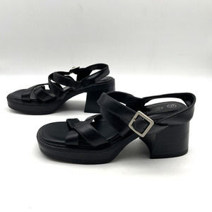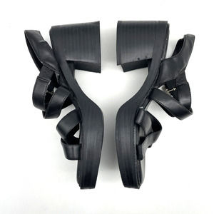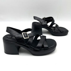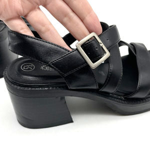 Vintage 90s Y2K Lower East Side Black Faux Leather Strappy Block Heel Sandal 5.5