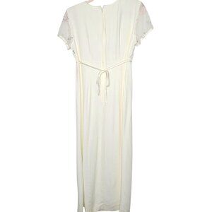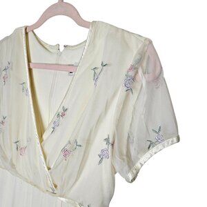 Vintage 90s Y2K Maurices Cream Embroidered Maxi Dress Sheer Floral Slit Size 7-8