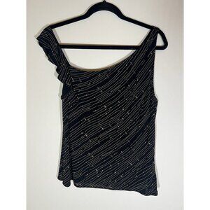 Vintage 90s Y2K Max Studio black ruffle asymmetrical tank blouse L glam