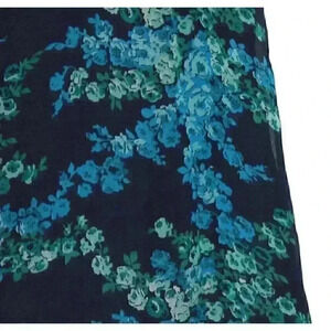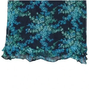 Vintage 90s Y2K Midi Dress Size 12 Blue Floral 100% Silk Flowy Ruffle Flounce