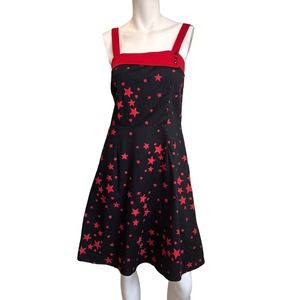 Vintage 90's Y2K Morbid Threads Red & Black Goth Star Print Sleeveless Dress M