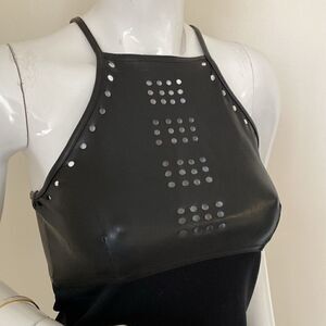 Vintage 90s Y2K Morgan De Toi Faux Vegan Leather Perforated Top Mini Dress