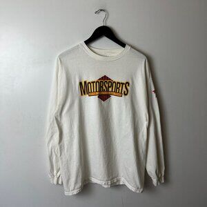 Vintage 90s Y2K Motorsports Dewey Cheetham Howe Racing T Shirt White XL Extra Large Graphic Tee 100% Cotton Long Sleeve Solid Logo Print Car Classic Memorabilia Sponsorship Adult Unisex Fit