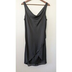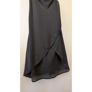 Vintage 90s Y2K Onyx Nite Dress Sz 14 Black Beaded Whimsigoth Fairy Grunge Cowl