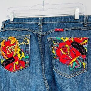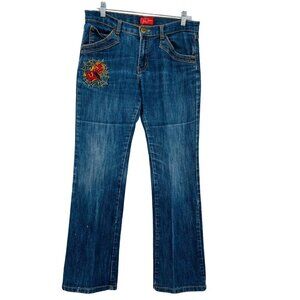 Vintage 90s Y2K Paco Jeans Women's Floral Key Embroidered Size 13 Straight Leg