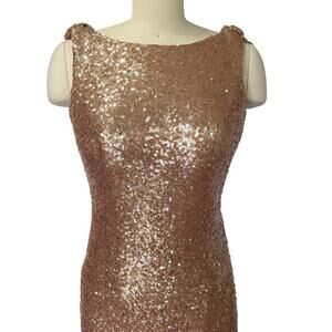 Vintage 90s Y2K Prom Dress Maxi Gown Size 4 Rose Gold Sequins Formal Cape Back