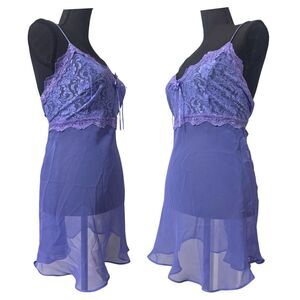 Vintage 90s Y2K Purple Floral Lace Coquette Babydoll Lingerie Mini Dress L