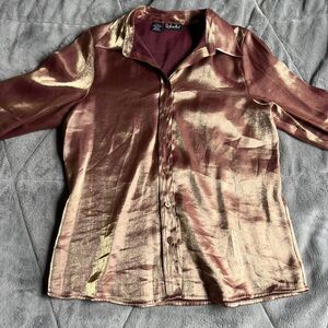 Vintage 90s - Y2K Rafaella gold/burgundy/bronze metallic satin button up large